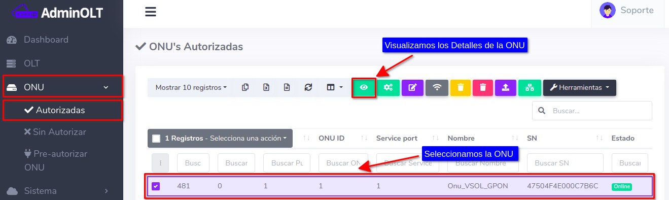 Tome en cuenta que los puertos PON de la OLT que utilizara deben tener deshabilitado el modo AutoLearn. Si tiene dudas sobre este tema puede consultar el siguiente manual; Configurar Puerto PON