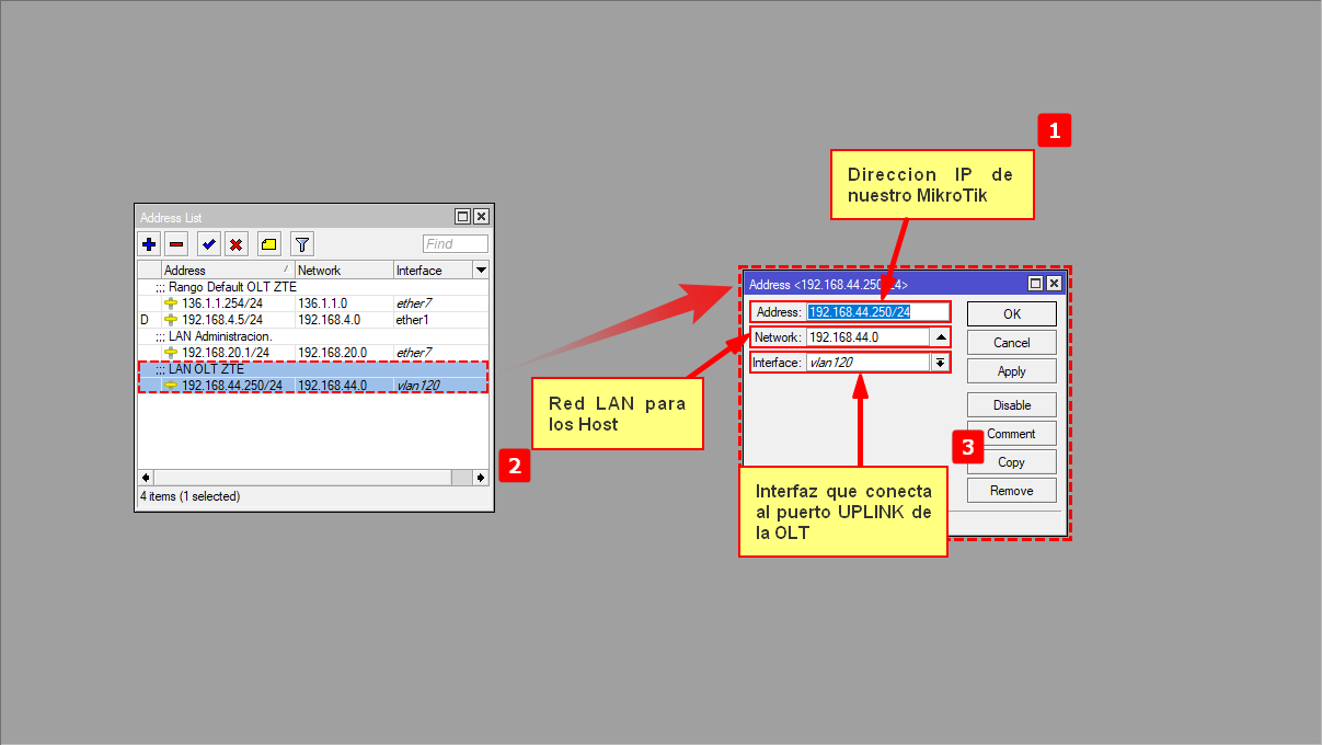 Configuración en RouterBoard MikroTik para OLT ZTE