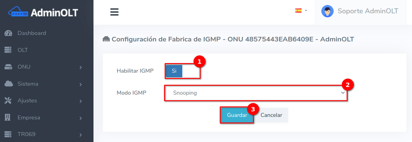 - Habilitar IGMP: Active o desactive la configuración de IGMP