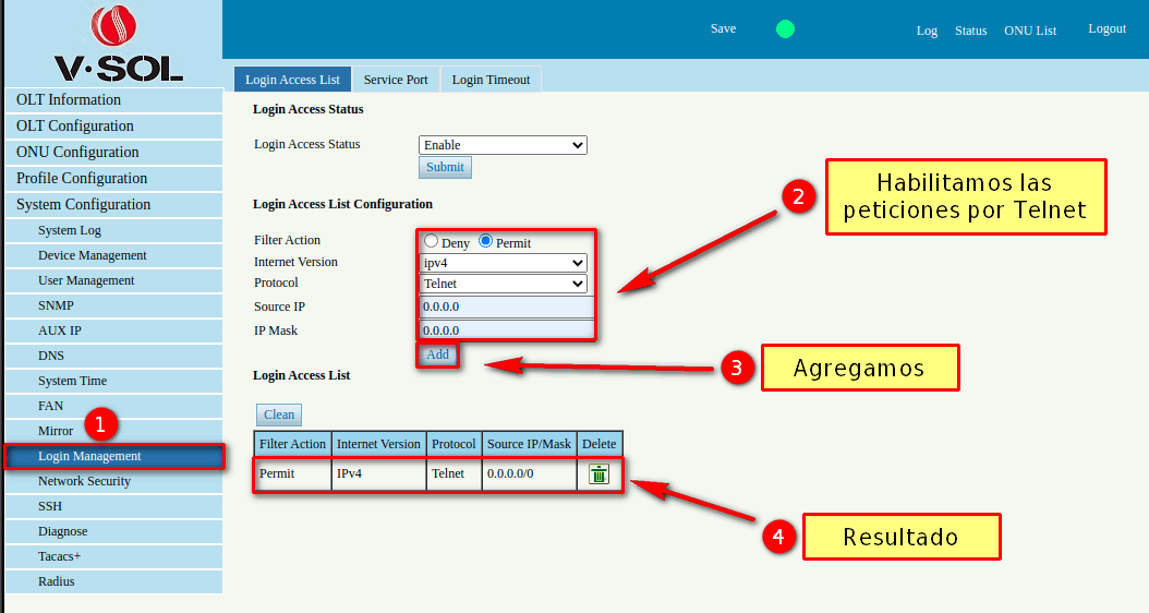 5 Acceso a la OLT desde un Navegador Web
