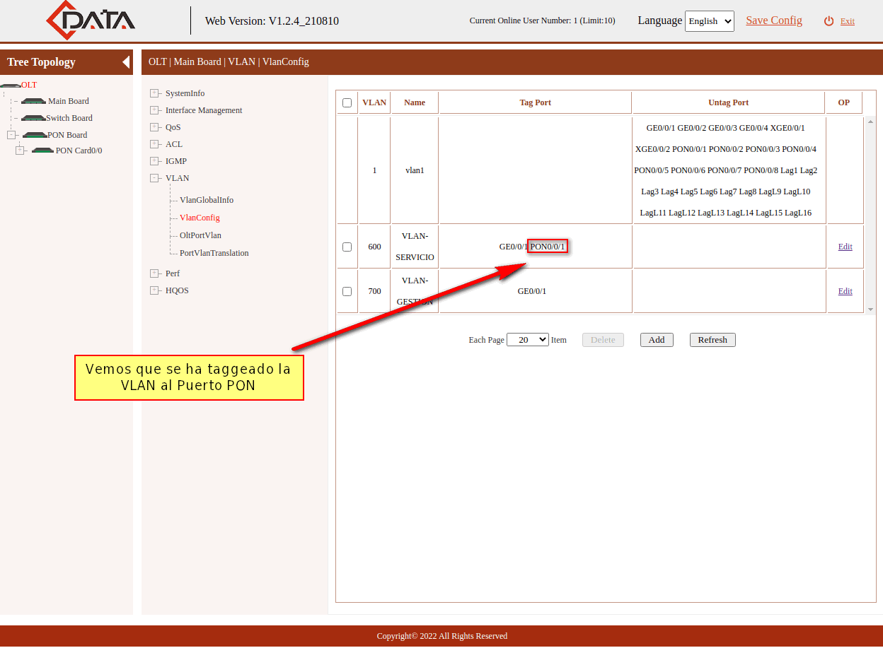 Esta configuración aun no esta disponible en AdminOLT, pero esto se puede hacer desde la interfaz de la OLT