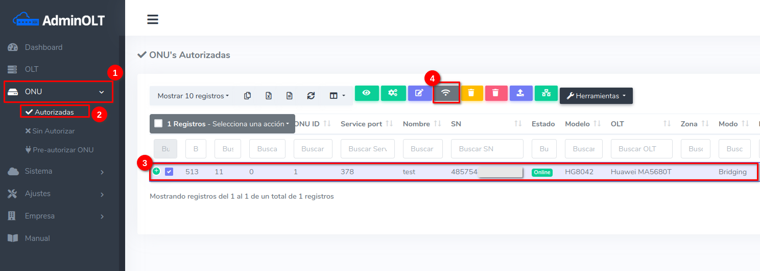 1Dirijase a la sección de ONU > Autorizadas > Editar Plan de Velocidad