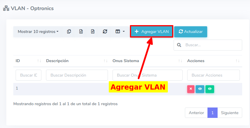 Crear VLAN en la OLT Optronics