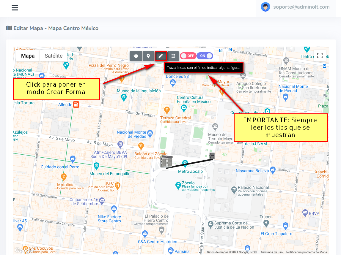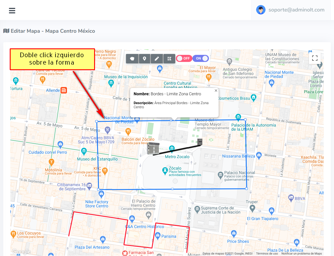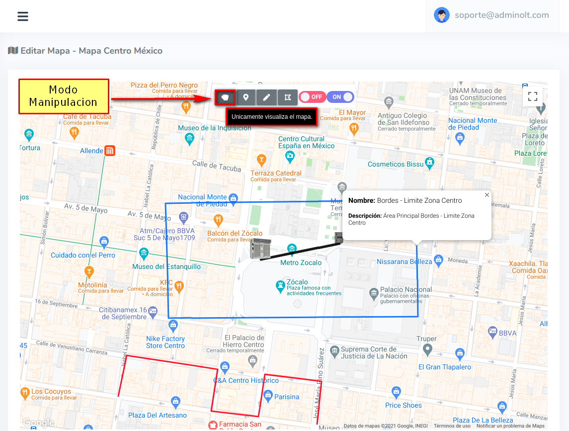 Damos click en la opción Manipular Mapa para terminar de dibujar la forma.