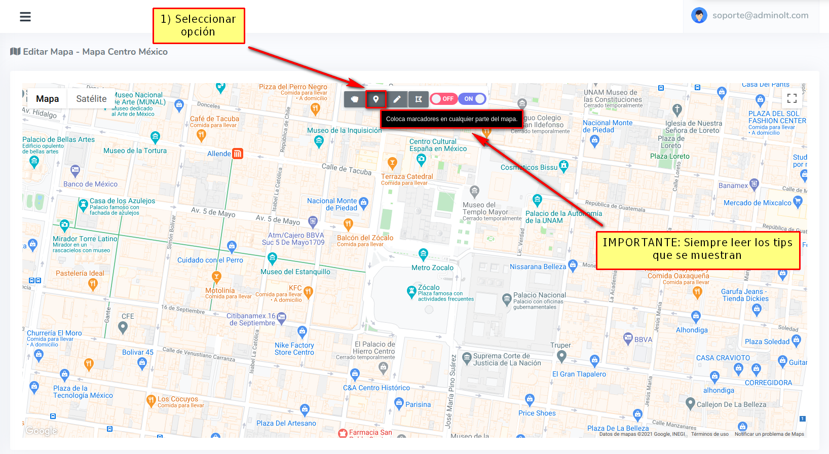 1 Poner en modo para manipular el mapa.