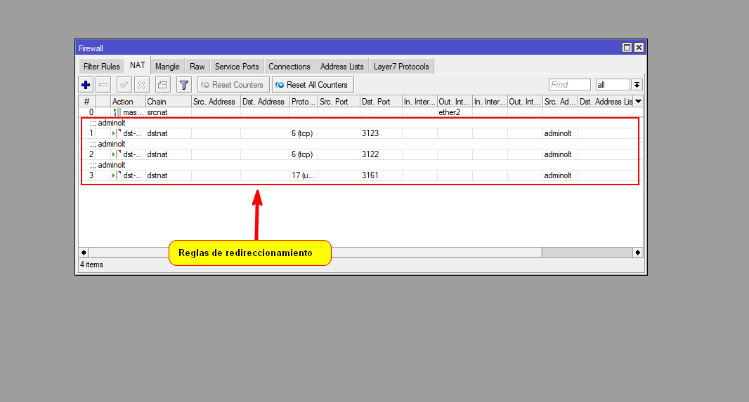 - Reglas firewall