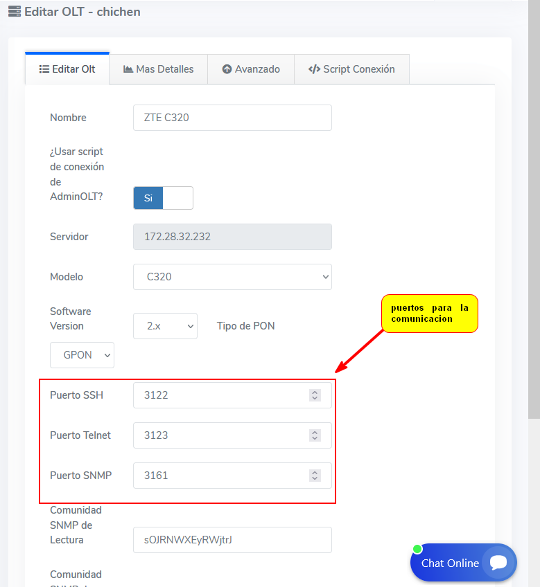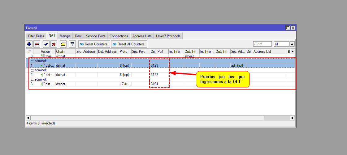 Para que la OLT pueda tener comunicación con el sistema es necesario que desde su router redirija el tráfico entrante a la OLT.