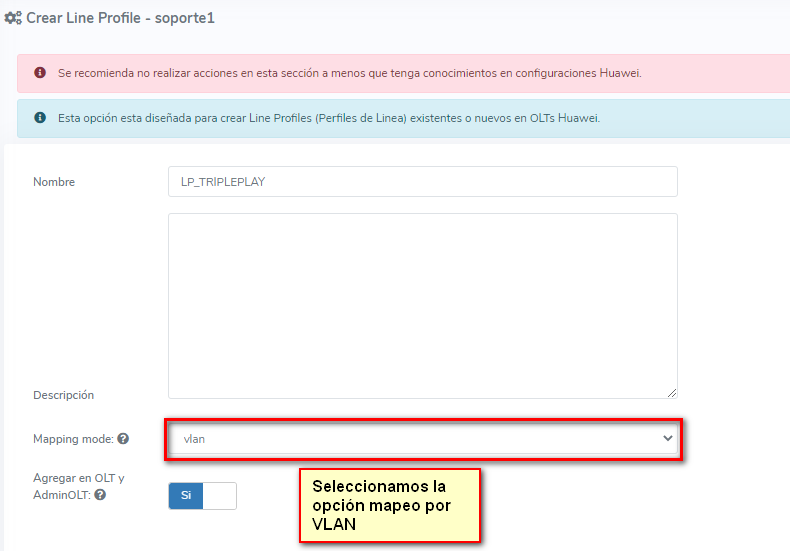 Para este caso vamos a seleccionar la opción de mapeo de VLAN de nuestro Line Profile