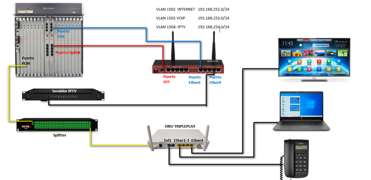 El Triple Play es la capacidad de dar servicio de internet, televisión y telefono a través de nuestra red de fibra óptica. Para ello es necesario que configuremos esos servicios desde AdminOLT